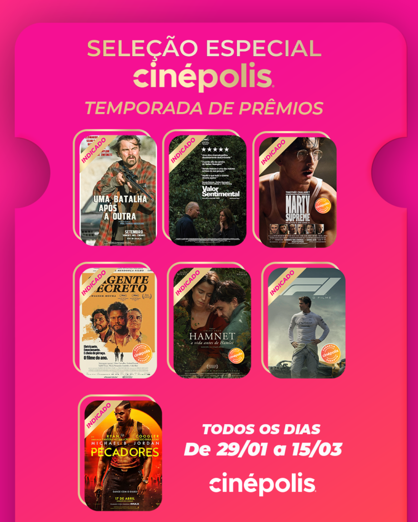 A Cinépolis, maior operadora de cinemas da América Latina, anuncia a promoção Seleção Especial – Temporada de Prêmios, uma iniciativa que reúne filmes indicados e premiados nas principais categorias do Oscar, com valores especiais para o público viver grandes histórias nas telonas.